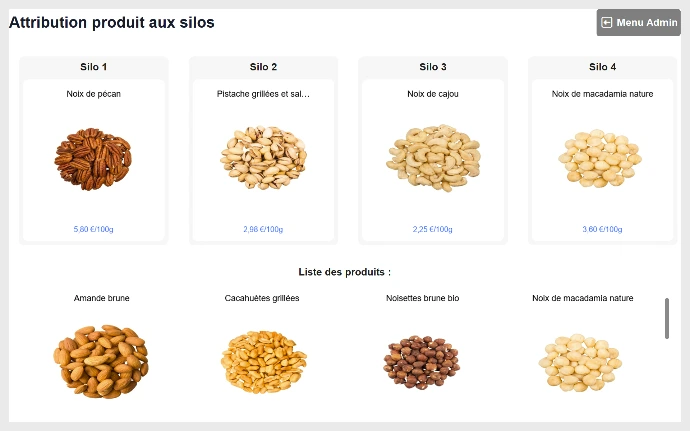 Notre distributeur intègre une interface administrateur conviviale, accessible via un code PIN, permettant de gérer facilement les produits et les prix.